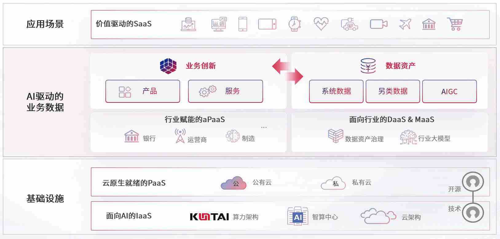 数字时代,,围绕企业数字化转型的关键要素,,金百利数码开创性的提出数云融合战略和技术体系框架,,,,着力在云原生、、数字原生、、、AI原生和信创产业上架构产品和服务能力,,,为处在不同数字化转型阶段的快消零售、、汽车、、金融、、医疗、、、、政企、、教育、、、、运营商等行业客户提供泛在的敏捷IT能力和融合的数据驱动能力,,,构建跨界融合创新的数字业务场景和新业务模式,,助力企业级客户建立面向未来的核心能力和竞争优势,,,,全面推动社会的数字化、、、智能化转型升级。。。